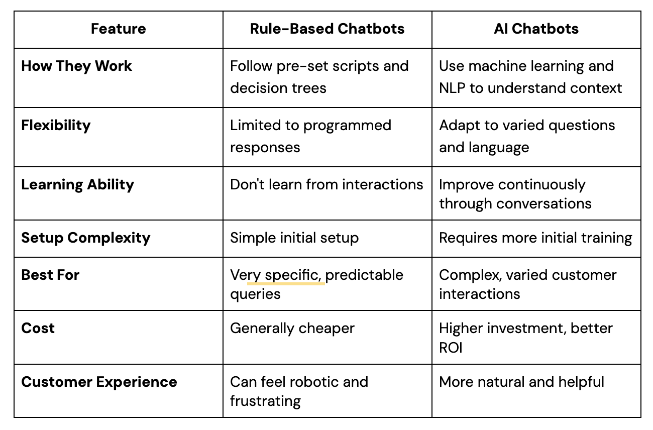 Rule-based chatbots vs AI chatbots: What's the difference?