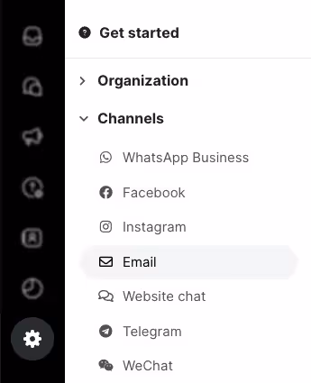 1. Open your Trengo account and go to Settings > Email and click on the ‘+’ icon or ‘Connect Email.’