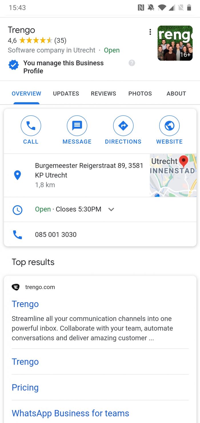 Especialmente chatear a través de Maps es muy potente. Imagina que quieres cortarte el pelo y hay varios peluqueros en tu barrio. La mayoría de ellos requieren que visites su página web, pero uno de ellos te permite enviar un chat y concertar una cita al momento. Ahí hay una clara ventaja, ¿verdad?