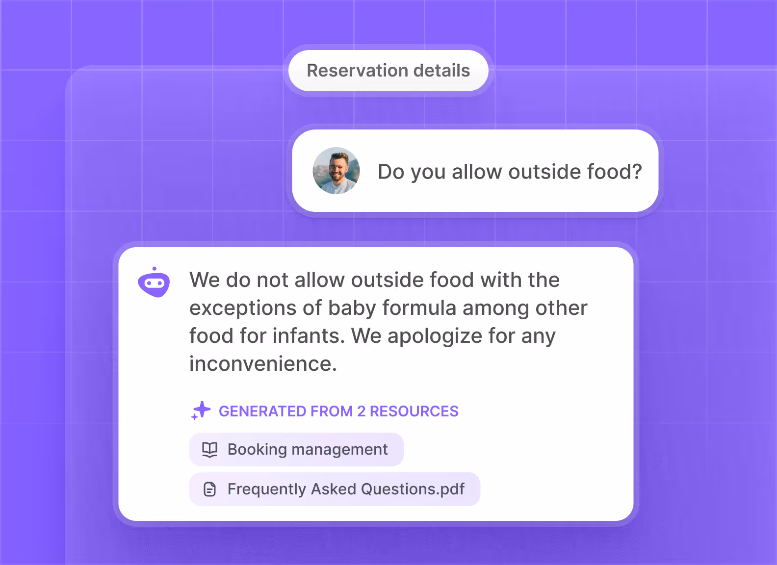 Desde consultas sobre entradas antes de su llegada hasta preguntas en tiempo real dentro del parque. Los agentes de IA de Trengo responden a tus preguntas más habituales en canales como WhatsApp y asignan las consultas a tu equipo sobre el terreno cuando es necesario.