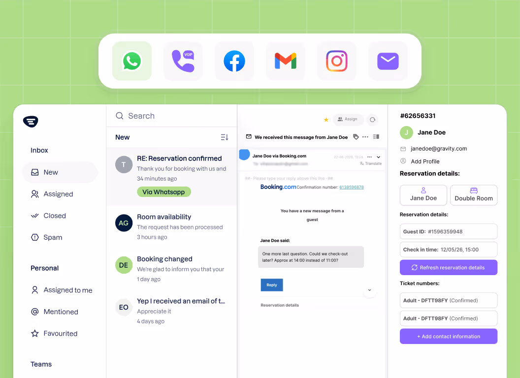 Provide instant responses to guest inquiries at any time of day. AI handles incoming questions automatically, helping your team manage peak demand and deliver consistent service without additional staff.