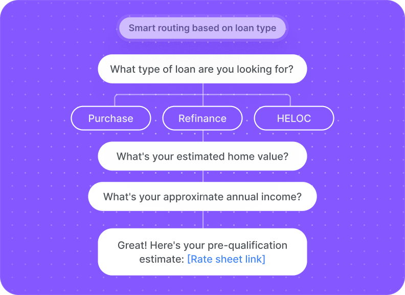 Prêt commercial ? Refinancement FHA ? Prêt hypothécaire jumbo ? L'IA vérifie le type de prêt et le profil de l'emprunteur, puis envoie le dossier au spécialiste qui peut conclure l'affaire.