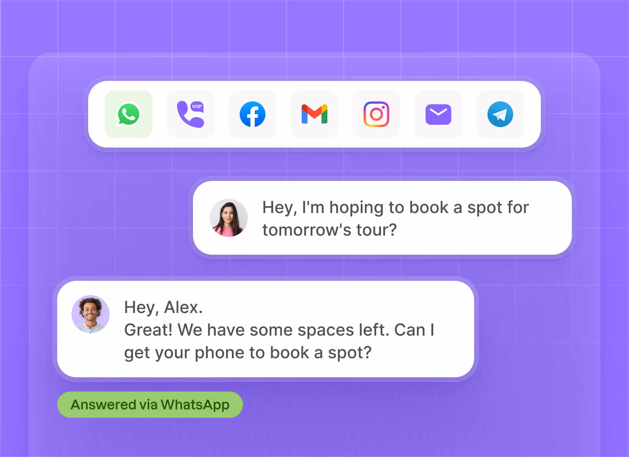 Centralizza le richieste degli ospiti con una casella di posta omnichannel, che include WhatsApp e molto altro, e rispondi più velocemente che mai.