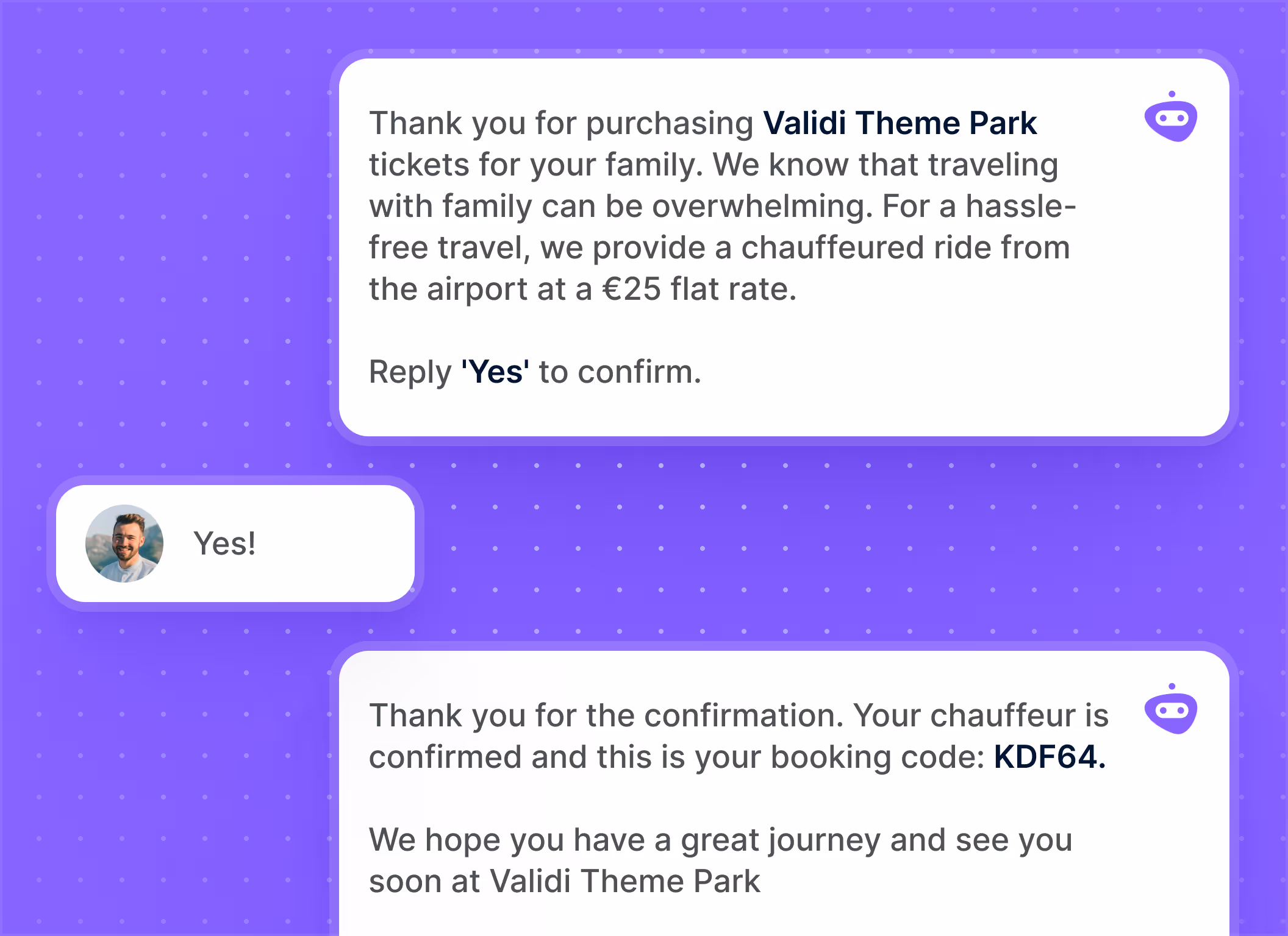 Offri un piacere in movimento. Automatizza le conferme di prenotazione, personalizza le opzioni aggiuntive e rispondi rapidamente alle domande con la soluzione WhatsApp Business di Trengo.