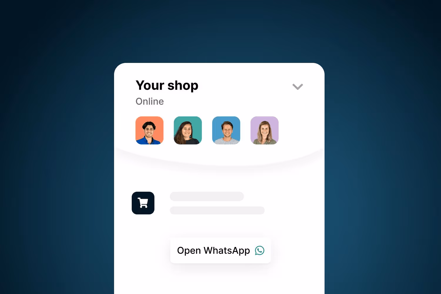 Je kunt bijvoorbeeld beginnen met het toevoegen van een WhatsApp-chat aan je website. Op die manier kun je shoppers, terwijl ze al kennismaken met je merk, een direct pad bieden naar je winkel en kunnen ze het gesprek met je voortzetten, zelfs nadat ze je site hebben verlaten.