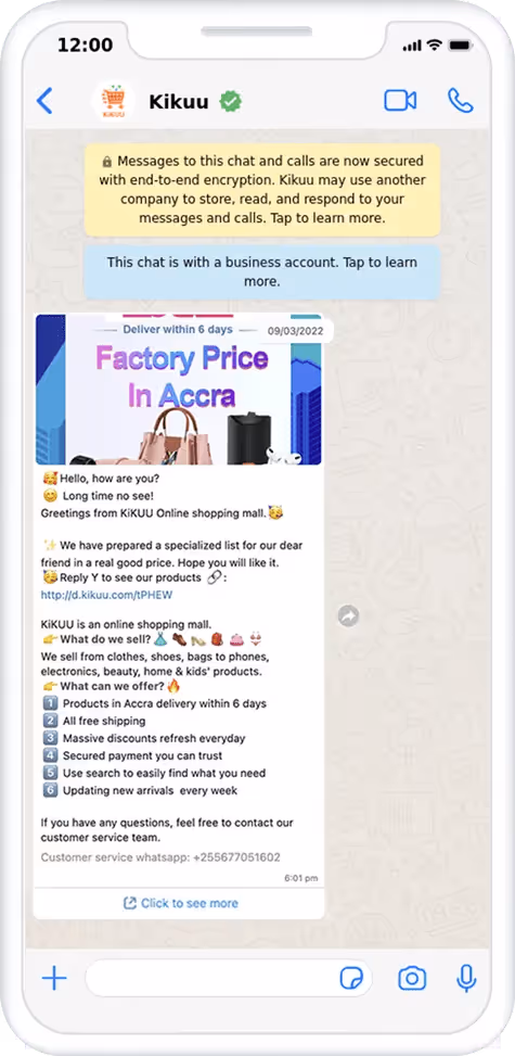 Dus, we spraken over populariteit, efficiëntie en ondersteuning. Laten we het nu hebben over verkoop. WhatsApp Business biedt verschillende functies die je kunt gebruiken om je verkoop te stimuleren. Ik zal er twee uitlichten.